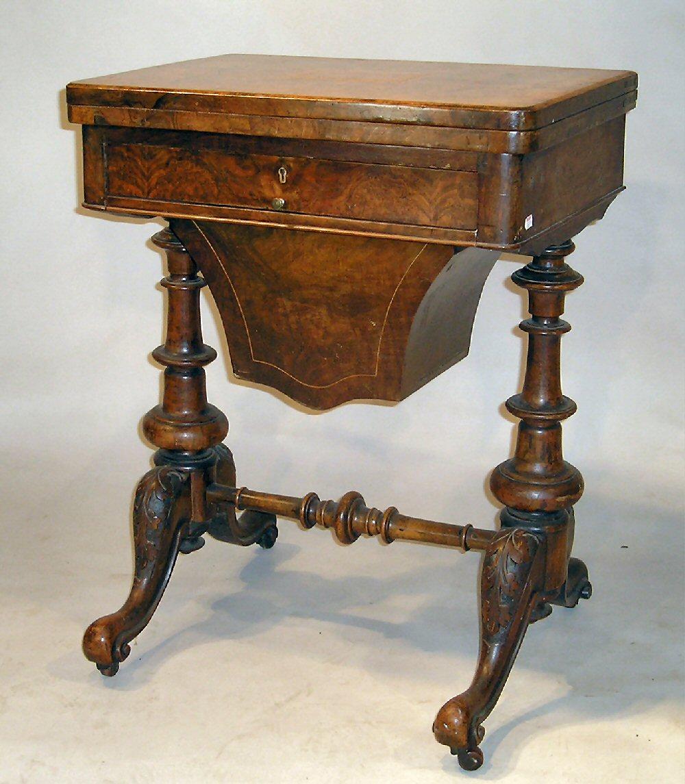 Victorian inlaid burl walnut fold- over games table.