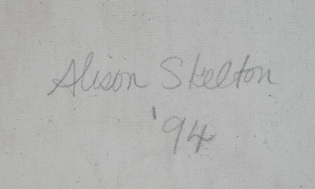 LOT 45 Mixed media oil on canvas signed Alison Skelton, d.1994, 30" x 22", "Untitled Figure". Estimate: $100 - $200 Auction Date: Tuesday, October 20 2015 at 7:00 PM