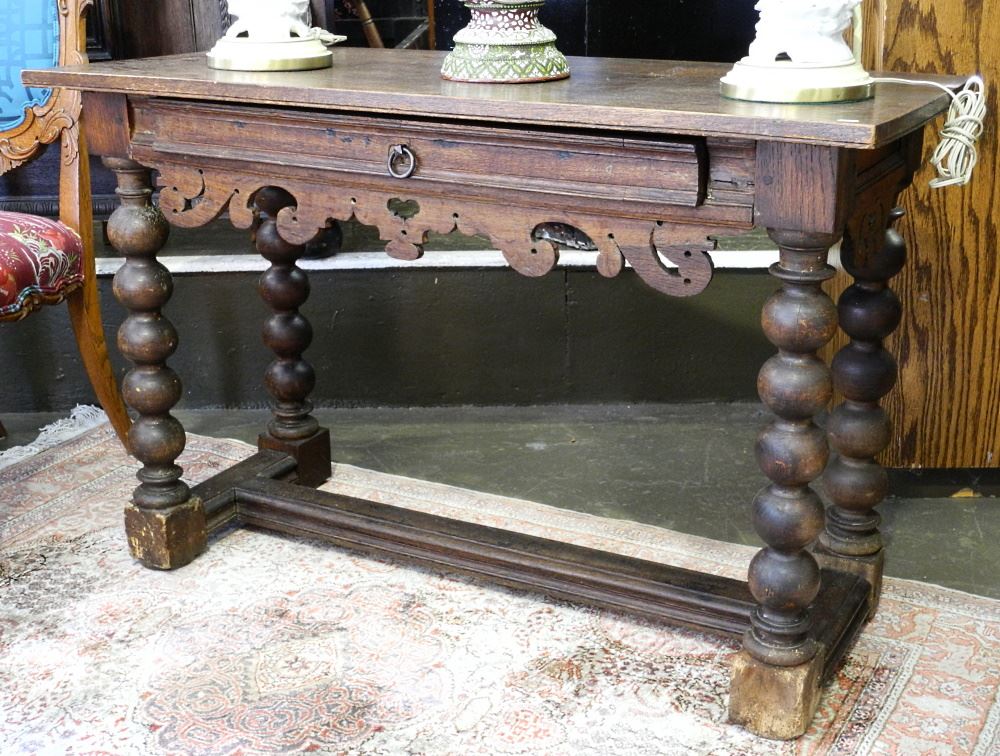 Danish Oak Trestle Table, 46 1/2" wide.