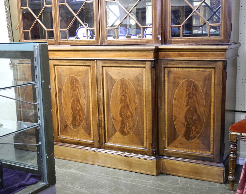 Mahogany Breakfront Bookcase with Astragal Glazed Doors, 78 1/2" wide.