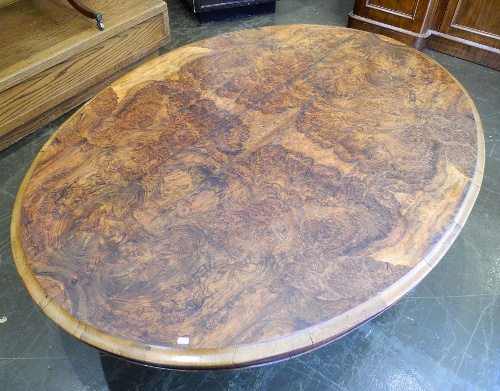LOT 31 Victorian Burr Walnut Loo Table, 58 1/2" wide. Estimate: $150 - $300 Sold For: $150 Auction Date: Tuesday, October 26 2021 at 6:00 PM