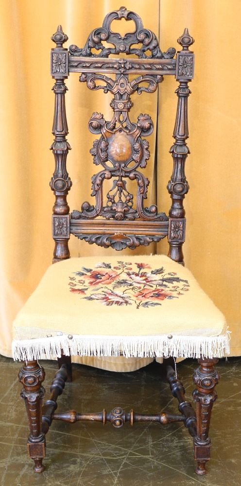 LOT 287 19th Century Carved Walnut Hall Chair, 42 1/4" high. Estimate: $150 - $300 Sold For: $160 Auction Date: Tuesday, October 26 2021 at 6:00 PM