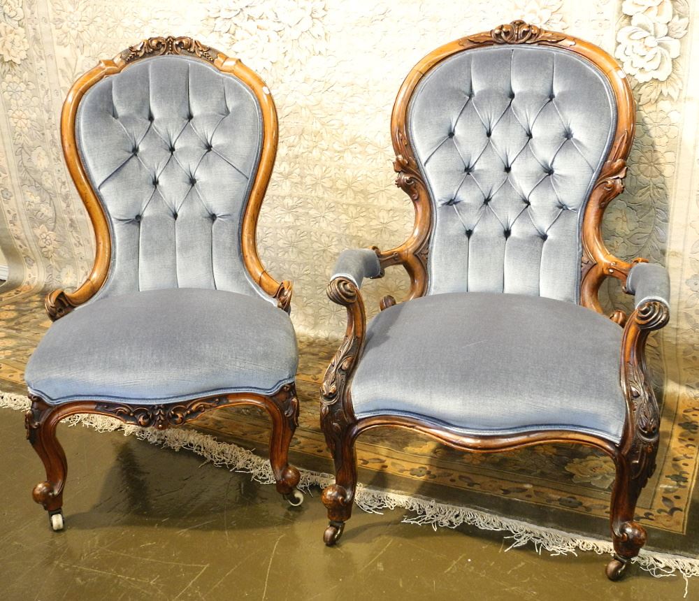 2 Blue Victorian Chairs.