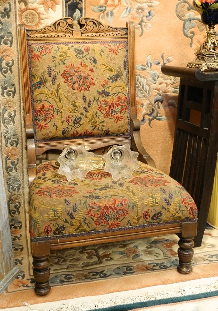 2 Late Victorian Fireside Chairs, With & Without Arms.