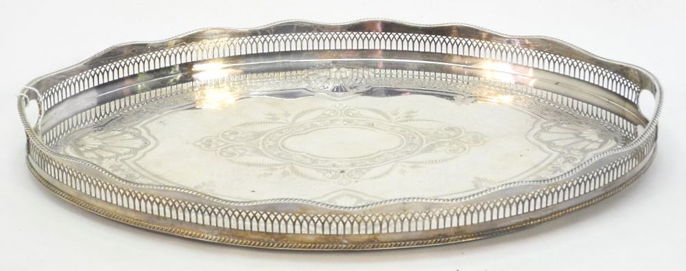 Cavendish Plate England Oval Galleried Silver Plate Tray, 22" Wide.