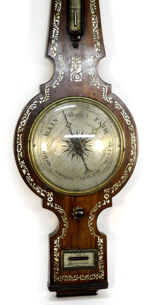 Mother of Pearl Inlaid Barometer signed Anzani Huddersfield, 41"H.