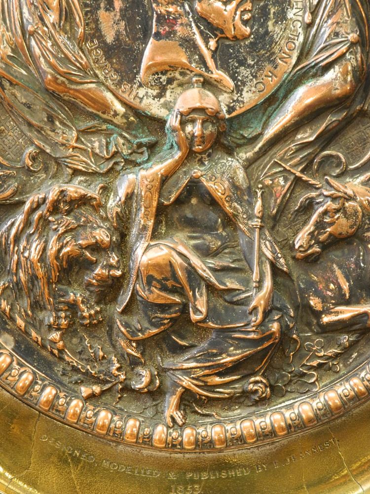 Copper & Brass Plaque Commemorating The Death of Wellington, Design E. Jeannest, 14 1/2" x 13".
