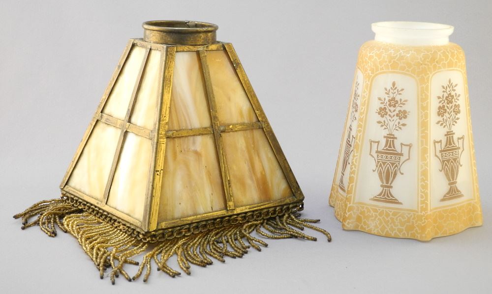 Antique Tiffany Style Slag Glass Light Shade & Urn Motif Light Shade, 5 1/2" High.