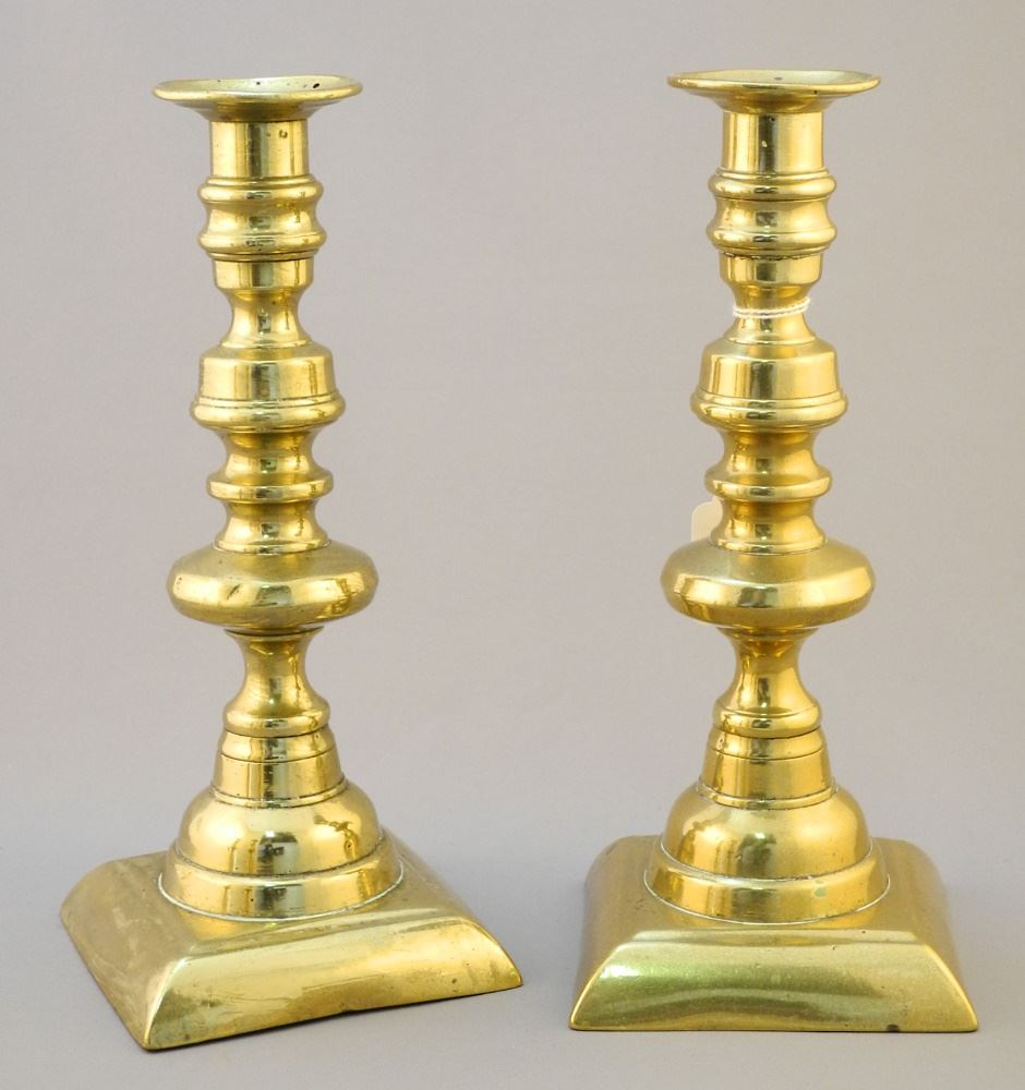 Wall Hanger Oil Lamp with 2 Pair Brass Candlesticks, 11 1/8" High.