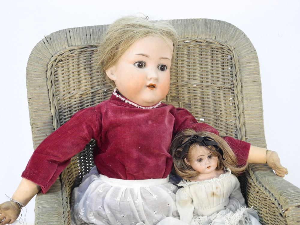 LOT 7 Two Porcelain Head Sleepy Eyed Dolls: Armand Marseille 24" & Heubach 10 1/2". Estimate: $60 - $100 Sold For: $80 Auction Date: Tuesday, June 13 2023 at 4:00 PM
