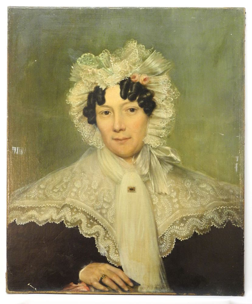 Unsigned Oil on Canvas, 30' x 24 3/4", "Woman Dressed in Elaborate Lace" unframed.