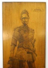 LOT 151 Pyrography Plaque "Arthur", 37 1/2" X 15 3/8". Estimate: $200 - $300 Auction Date: Tuesday, June 13 2023 at 4:00 PM