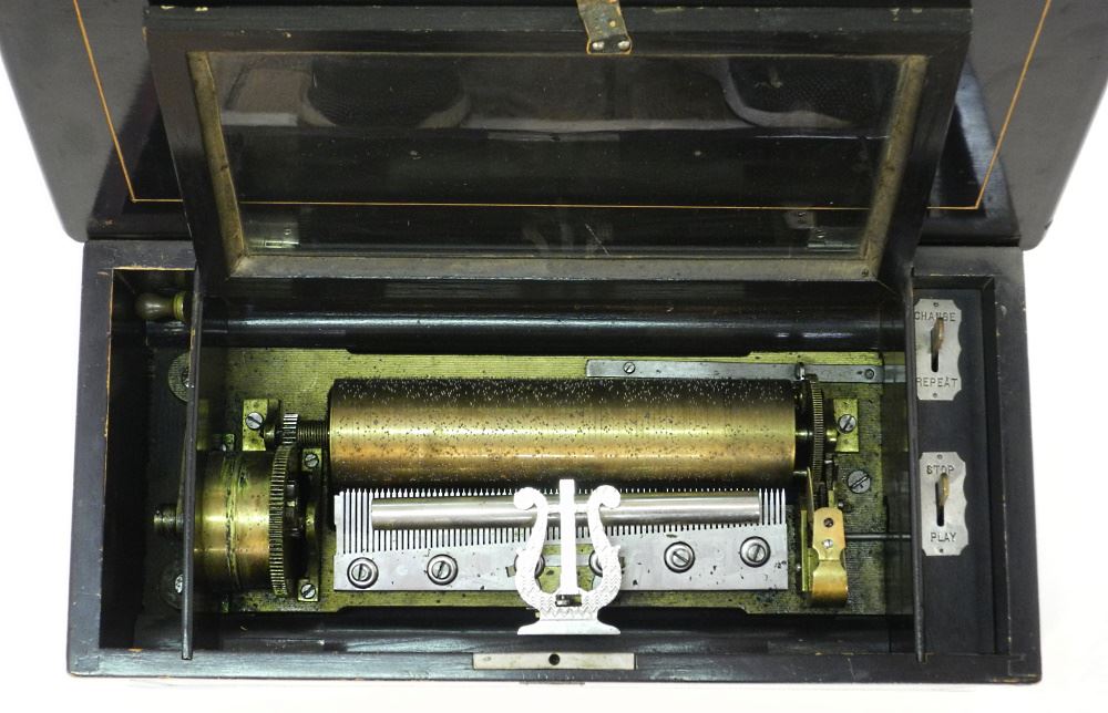LOT 54 Swiss Music Box, 17" Wide. Estimate: $300 - $400 Sold For: $275 Auction Date: Tuesday, June 13 2023 at 4:00 PM