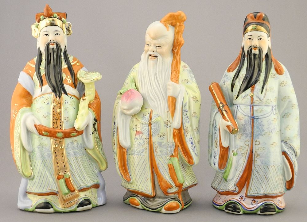 3 Porcelain Daoist Star Gods, 9 5/8" H.
