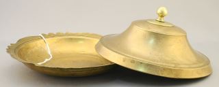 Arabic Bronze-Tone Covered Dish, Dated Hijri 1274, 7 1/4" Diameter.