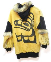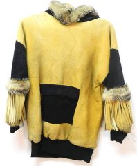 LOT 191 Fur Trimmed Leather Pullover with Northwest Coast Design, Size M. Estimate: $80 - $120 Sold For: $90 Auction Date: Tuesday, April 09 2024 at 4:00 PM