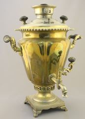 LOT 64 Russian Brass Samovar, 16 3/8"H. Estimate: $80 - $120 Sold For: $70 Auction Date: Tuesday, April 09 2024 at 4:00 PM