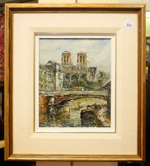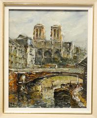 LOT 317 Oil on Canvas signed R. (Raymond) Besse, 10 1/2" x 8 3/4", "Notre Dame Paris". Estimate: $80 - $120 Sold For: $65 Auction Date: Tuesday, April 09 2024 at 4:00 PM