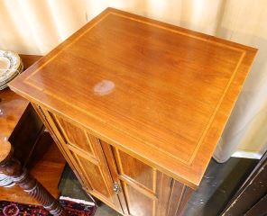 LOT 49 Edwardian Banded Mahogany Sheet Music Cabinet, 42" x 20 1/2" x 17 1/2". Estimate: $120 - $180 Sold For: $120 Auction Date: Tuesday, April 09 2024 at 4:00 PM