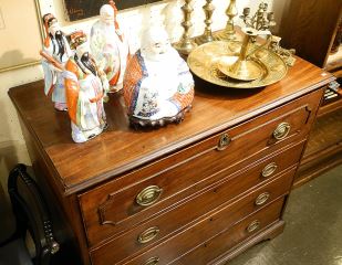 LOT 276 Geo Mahogany Bureau Chest with 3 Graduated Drawers. Estimate: $250 - $500 Auction Date: Tuesday, April 09 2024 at 4:00 PM