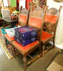 8 Carved Oak High Back Dining Chair 44 1/2"H.