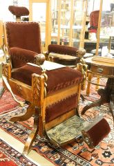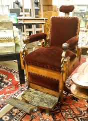 Hanson Wooden Barbers Chair, C. 1895 - 1905, 48 1/2" x 24" x 43".