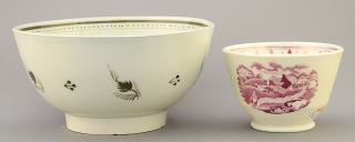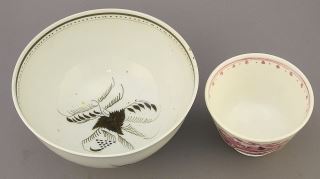 LOT 51 3 English Ceramic Wares: 18th C. Pearlware Bowl (6" Diam.), Tea Bowl, Pitcher. Estimate: $60 - $100 Sold For: $40 Auction Date: Tuesday, April 09 2024 at 4:00 PM