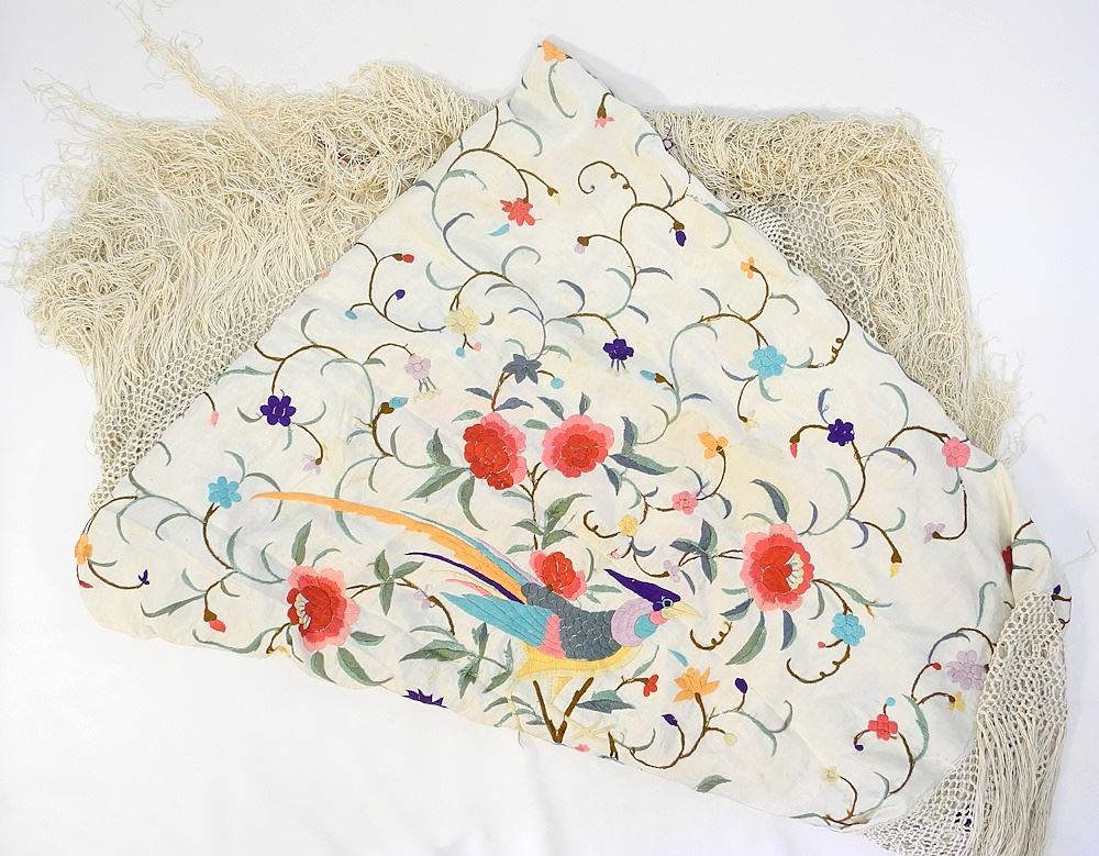 Chinese Silk Piano Shawl, Approx. 60" x 60".