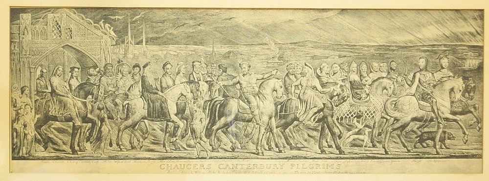 LOT 178 Print of Engraving After William Blake, 7 3/4" x 22 1/2", "Chancers Conkerburg Pilgrims". Estimate: $100 - $150 Sold For: $100 Auction Date: Tuesday, April 09 2024 at 4:00 PM