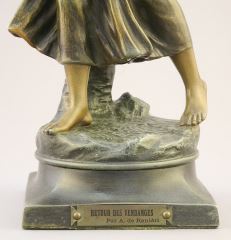LOT 24 Spelter Figure by A. de Ranieri, 13"H, "Retour Des Verdanges". Estimate: $100 - $200 Sold For: $110 Auction Date: Tuesday, April 09 2024 at 4:00 PM