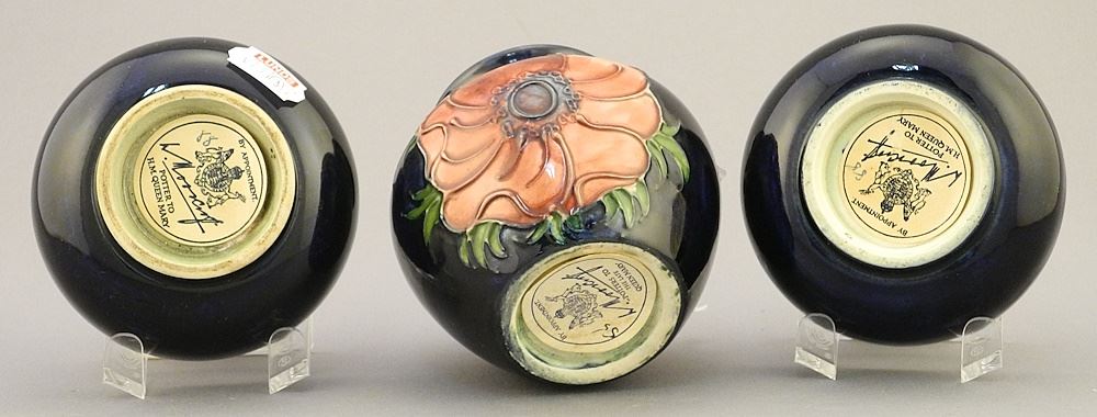 LOT 135 Moorcroft Anemone Vase (2 7/8"H) & 2 Dishes, 3" Diameter. Estimate: $80 - $100 Sold For: $60 Auction Date: Tuesday, April 09 2024 at 4:00 PM
