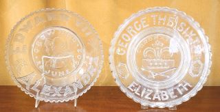LOT 31 2 Molded Glass Commemoration Dishes: Edward 7th 1902 / George 6th 1957, 9 1/4" & 9 1/2" Diam. Estimate: $50 - $100 Sold For: $40 Auction Date: Tuesday, April 09 2024 at 4:00 PM