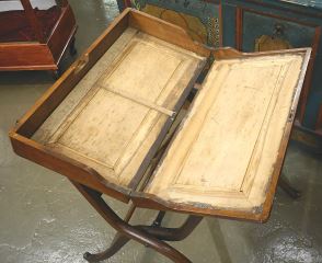 LOT 323 19th C. Mahogany Campaign Folding Desk, 38 1/2"H. Estimate: $100 - $150 Sold For: $130 Auction Date: Tuesday, April 09 2024 at 4:00 PM