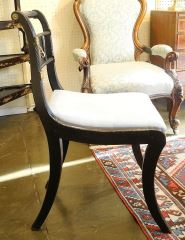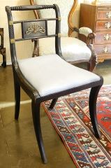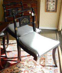 LOT 242 Set of 6 Regency Ebonized Mahogany & Brass Dining Chairs, 32 1/8"H. Estimate: $100 - $200 Sold For: $130 Auction Date: Tuesday, April 09 2024 at 4:00 PM