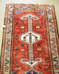 LOT 182 Shiraz Runner Approximately 11'7" x 3'9". Estimate: $200 - $400 Sold For: $110 Auction Date: Tuesday, April 09 2024 at 4:00 PM