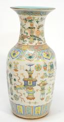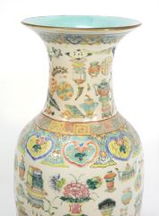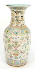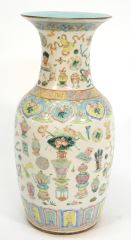 LOT 69 Chinese Famille Rose Porcelain "Antiques" Vase, 17 3/4"H (long vertical crack noted). Estimate: $300 - $500 Auction Date: Tuesday, April 09 2024 at 4:00 PM