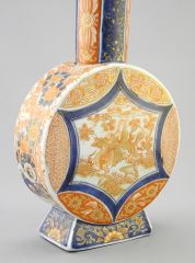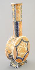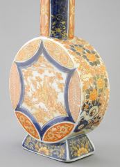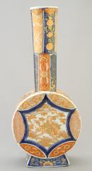 LOT 326 Japanese Imari Porcelain Vase, Flat Sided with Tall Neck, 13 1/2"H (small rim chip noted). Estimate: $200 - $300 Auction Date: Tuesday, April 09 2024 at 4:00 PM