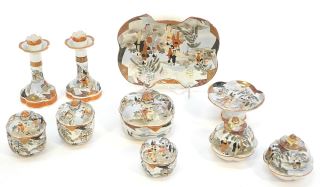 LOT 264 Kutani Porcelain 10 Piece Dresser Set, 1 7/8" - 5 1/2"H. Estimate: $100 - $200 Sold For: $80 Auction Date: Tuesday, April 09 2024 at 4:00 PM