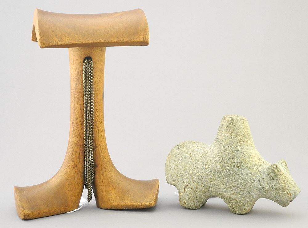 LOT 169 Karamajong Wooden Stool & Stone Carving of a Cow, 8 1/4" & 3 7/8"H. Estimate: $50 - $60 Auction Date: Tuesday, April 09 2024 at 4:00 PM