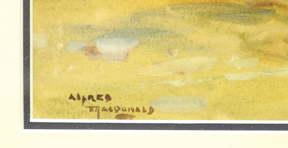 Watercolour signed Alfred MacDonald, 9 3/8 x 13 3/8", "Low Tide, Rye" (restoration noted).