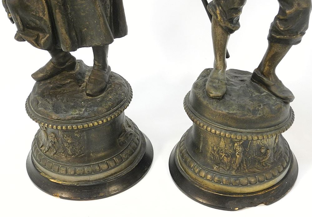 Pair of Spelter Figures signed L. Weiss, 26 1/2"H, "Harvesters".