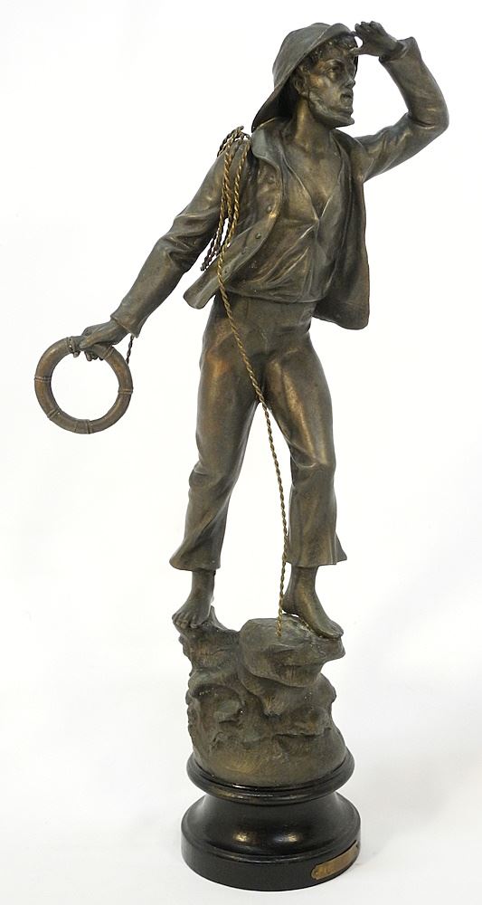 Unsigned Spelter Figure, 23 1/4"H, "Fisherman".