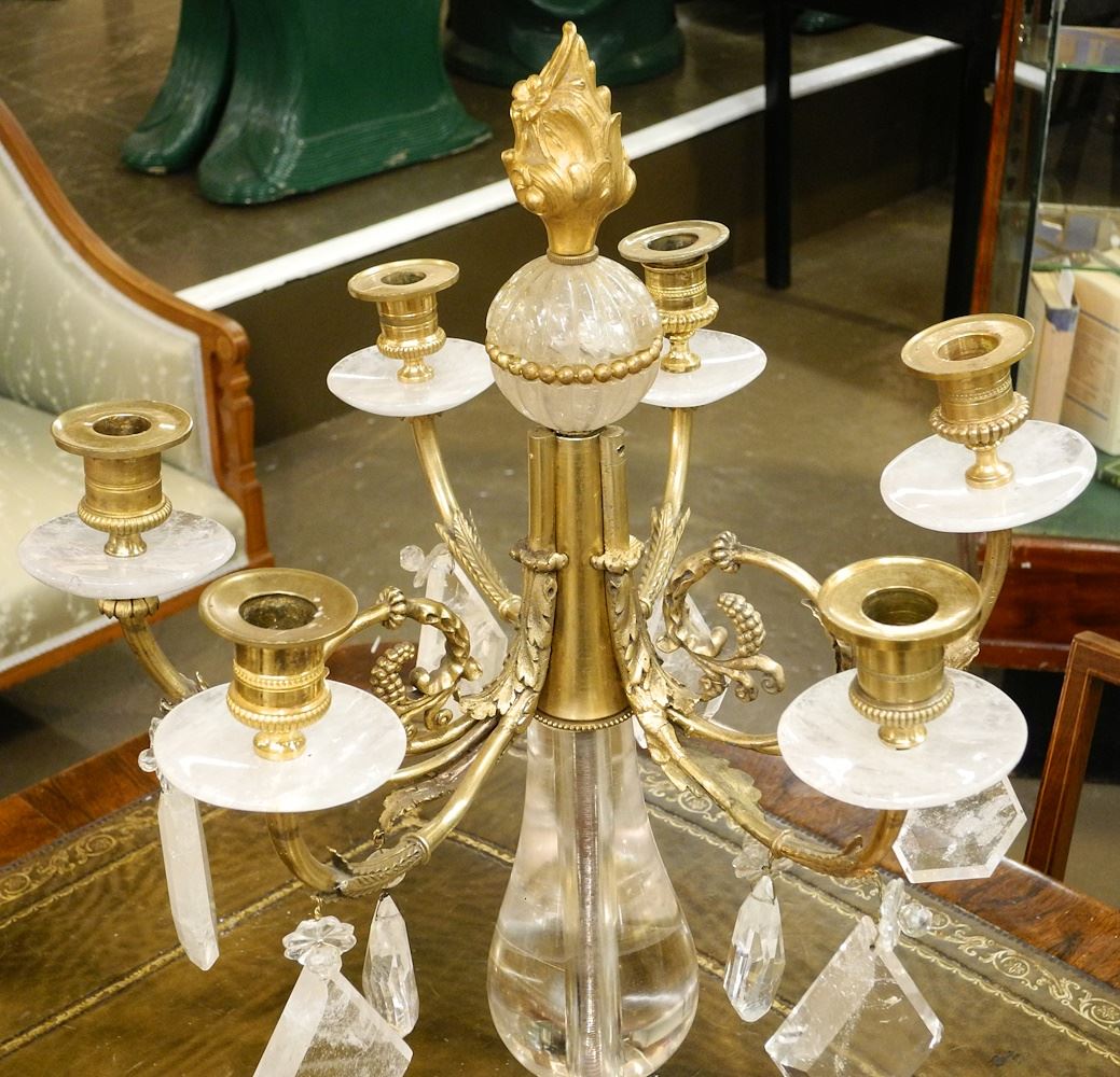 LOT 299 Pair of Ormolu & Rock Crystal Candelabra, 25" x 17" x 17" (as found). Estimate: $1,500 - $2,500 Auction Date: Tuesday, April 09 2024 at 4:00 PM