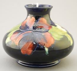 LOT 333 Moorcroft Hibiscus Vase (4"H) & Crown Devon Square Bowl (8 3/4"). Estimate: $120 - $160 Auction Date: Tuesday, April 09 2024 at 4:00 PM