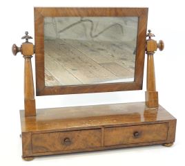 LOT 98 19th C. Mahogany Dressing Mirror, 21 3/4" x 24" x 9" (finial noted). Estimate: $80 - $120 Sold For: $140 Auction Date: Tuesday, April 09 2024 at 4:00 PM