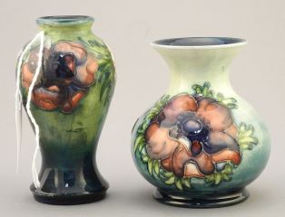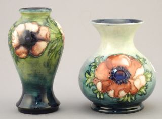 LOT 311 2 Moorcroft Anemone Vases: Baluster (4"), Squat, 3 1/2"H. Estimate: $60 - $100 Sold For: $70 Auction Date: Tuesday, April 09 2024 at 4:00 PM