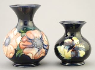 LOT 313 2 Moorcroft Vases: Anemone (5"H) & Hibiscus, 3 1/2"H. Estimate: $100 - $150 Sold For: $70 Auction Date: Tuesday, April 09 2024 at 4:00 PM
