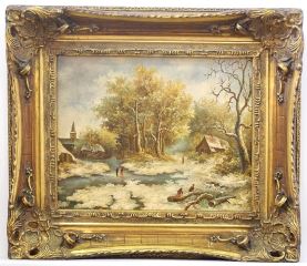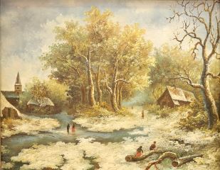 LOT 200 Oil on Board signed Rensil, 7 1/2" x 9 3/8", "Landscape with Figures & Spire". Estimate: $100 - $200 Sold For: $120 Auction Date: Tuesday, April 09 2024 at 4:00 PM