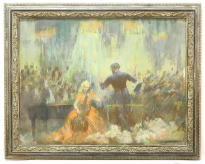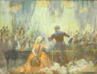 LOT 176 Unsigned Pastel on Paper, 19 1/4" x 25 1/2", "Cellist & Conductor". Estimate: $100 - $200 Sold For: $90 Auction Date: Tuesday, April 09 2024 at 4:00 PM