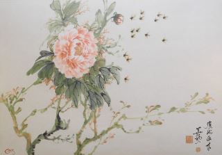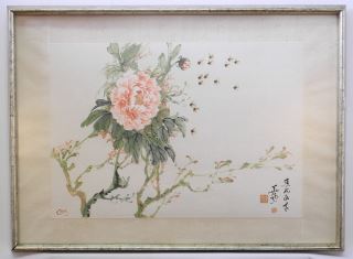 LOT 184 Chinese Ink & Colour Printing signed Chin, 14 1/8" x 20 1/2", "Bees & Chrysanthemum". Estimate: $70 - $100 Auction Date: Tuesday, April 09 2024 at 4:00 PM